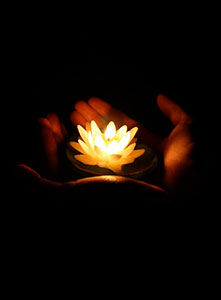 – تصور کنید این دایره نورانی به سمت سر، شانه، سینه، شکم و همین طور تا پاها، پایین می آید و تمام وجودتان را نورانی می کند. شما در امنیت و شفا به سر می برید.